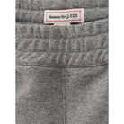 Women’s sports trousers in grey organic jersey, with screen-printed McQueen graffiti logo on the left leg. Elasticated waistband with internal drawstring, pockets inside the hips and one welt back pocket. Finished with ribbed stretch knit cuffs. Composition: 100% Cotton Alexander McQueen is a British luxury fashion house founded by designer Alexander McQueen in 1992. The house of Alexander McQueen is distinguished by its innovative and uncompromising expression of unbridled creativity.-InnerSku:22AP56-59/22DIC190-193