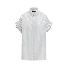The cuffed sleeve Shirt by Balenciaga is an elegant and contemporary piece, crafted from striped poplin for a refined and versatile look. The classic shirt cut, button-down collar, and seven front buttons with Balenciaga engraving enhance the silhouette, while the short cap sleeves add a modern detail. The design is completed by a chest pocket with embroidered logo and a rounded hem, making this shirt perfect for sophisticated, characterful outfits, ideal for day or evening wear.