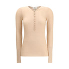 The Merino Wool Henley Sweater by Chloé brings everyday elegance to life with refined details. Rib-knit construction frames the V-neckline with fabric-covered buttons, complemented by long sleeves and a straight hem that enhance the clean silhouette. A versatile and comfortable piece, perfect for both sophisticated and relaxed looks.