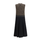 The Prada Shetland wool and cashmere Dress reflects a refined balance of innovation and sartorial tradition. Defined by clean lines and rich textures, it features a Shetland wool bodice paired with a softly flared cashmere skirt. With its relaxed fit, ribbed crew neck, side zip closure, and flared hem, the dress is discreetly accented by Prada’s iconic fabric triangle logo, embodying understated sophistication.