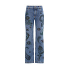 Etro’s flower and bee print flare Jeans are a feminine, natural-spirited garment made from cotton denim. They feature a fitted line at the hips that opens into a flared bottom, enhanced by a print inspired by the natural world, with Paisley motifs, flowers and bees. The five-pocket style is complemented by distinctive details such as a metal button with embossed Pegasus logo and a back salpa with ETRO and Pegasus logos. The regular waist, Pegaso button closure and hidden zipper ensure comfort and style, making these jeans an iconic and original garment.