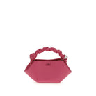 The Bou mini Handbag by Ganni, with its grainy texture, combines elegance and distinctive details in a compact design. Embellished with the tone-on-tone Ganni Butterfly logo and embossed logo on the back, it features a braided top handle with knot, adjustable and removable shoulder strap, and metal nuts engraved with the Ganni and Butterfly logos. The internal magnetic closure, single compartment, and flat card pocket complete the bag, making it practical and refined.
