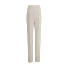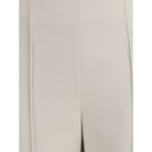 Giorgio Armani viscose cady Trousers, a fabric with ancient origins that maintains its compactness, ensuring clean cuts when lasered. Having become one of the house’s iconic fabrics over time, it’s perfect for adding a modern yet sporty twist to garments. The straight silhouette and high waist define the style, featuring vertical seams, side pockets, and a side zip.