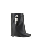 Givenchy’s Shark Lock leather Ankle Boots stand out for their bold and sophisticated design. Featuring an almond toe and a distinctive trouser-style shaft, they combine structured elegance with a contemporary spirit. The padlock detail on the side panel adds an iconic and distinctive touch, while the wedge heel ensures momentum and stability.