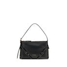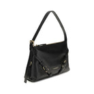 Voyou mini Shoulder Bag by Givenchy is a compact and sophisticated accessory made of smooth leather. Featuring a zippered closure, it features an adjustable strap for comfortable shoulder wear. Embossed GIVENCHY signature decorates the front, while the interior is embellished with the GIVENCHY Paris applique. GIVENCHY-engraved metal buckles and gold-tone metallic details complete the design. The main compartment offers essential space for daily essentials.