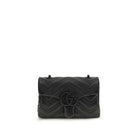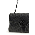 The GG Marmont mini Shoulder Bag by Gucci, crafted from matelassé nappa leather with a chevron pattern, combines elegance and refinement. Embellished with tone-on-tone enamel hardware and the double G logo, it features a leather shoulder strap with chain and black ottoman lining. The magnetic snap closure completes the design, making the bag versatile and sophisticated.