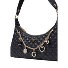 The Guess EVERLEE TOP ZIP SHOULDER BAG (model HWEG86 79180) is the perfect medium-sized shoulder bag for women who want both style and practicality. Crafted entirely from durable polyurethane, this bag features elegant quilted detailing that gives it a sophisticated and contemporary look. The design is enhanced by a decorative chain adorned with metallic charms and iconic details, adding a glamorous and distinctive touch. The top zip closure ensures security and convenience, while the wide shoulder strap provides optimal comfort even for extended wear. Ideal for daily outfits or special occasions, this bag combines functionality and trendsetting Guess style.