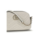 The GG Marmont Shoulder Bag by Gucci is a style icon, crafted from nappa leather with a chevron pattern and embellished with the distinctive GG metal detail on the front. The adjustable shoulder strap, made from a combination of leather and metal chain, offers versatility and comfort. The zip closure ensures security, while the lined interior includes a patch pocket for added practicality.