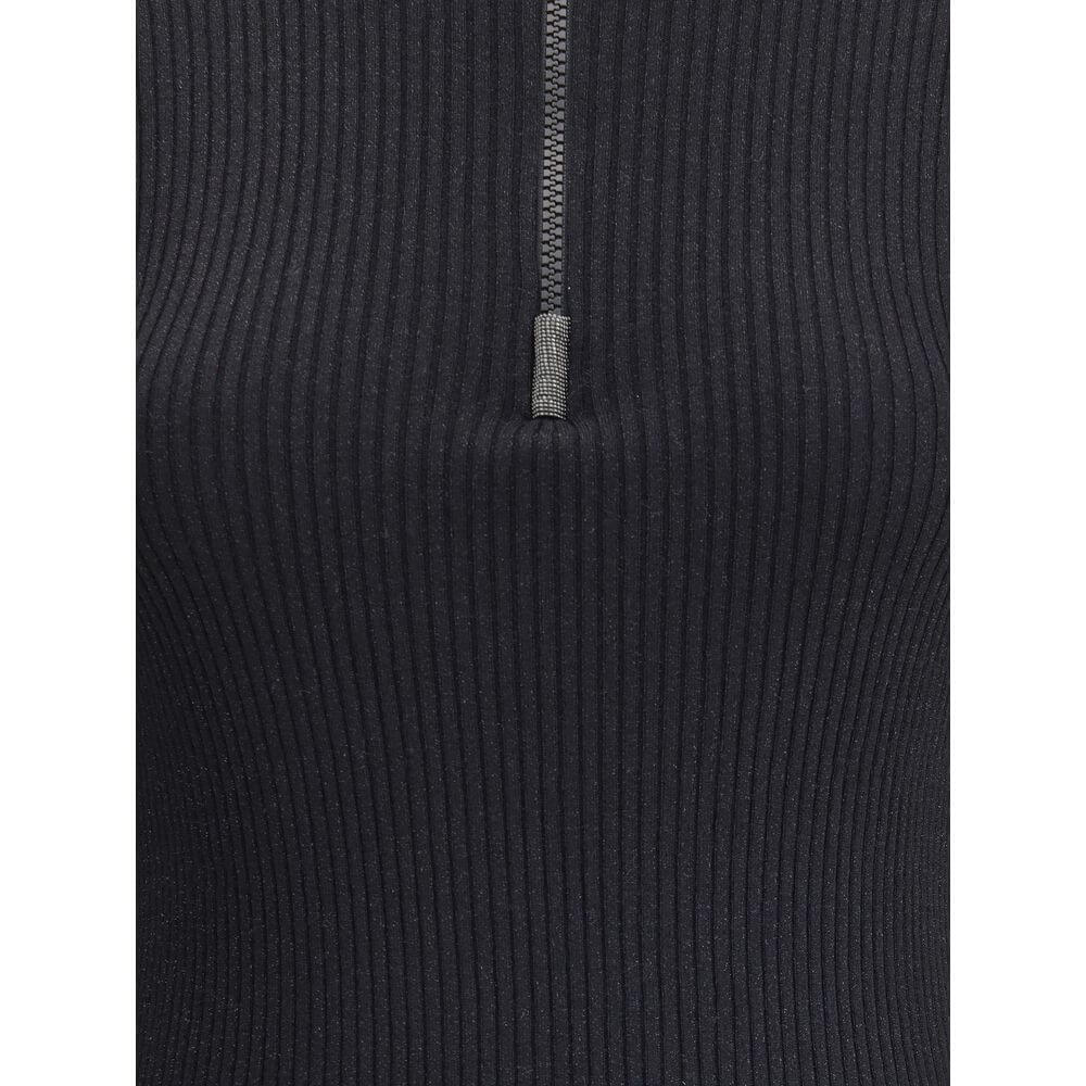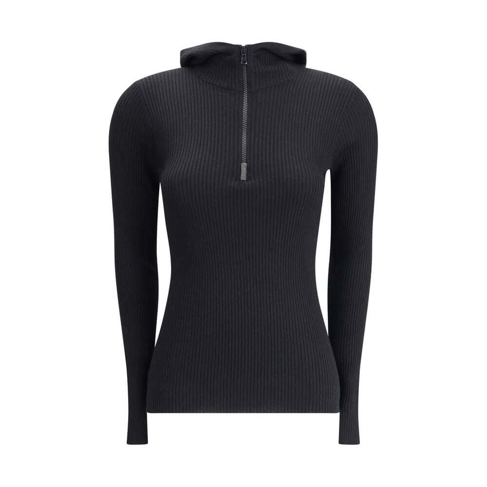Brunello Cucinelli’s Hooded Long Sleeve Sweater is a casual-chic piece with a refined style. Made of ribbed knit, it is embellished with a subtle glitter thread that adds a bright and refined touch. The front zipper and hood complete the design, combining comfort and sophisticated simplicity.