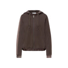 The Street One short silk look hoody jacket 324537 for women combines urban style with modern comfort. Crafted from a refined blend of 46% modal, 46% polyester, and 8% elastane/lycra, this hoodie offers a silky appearance and touch, making it pleasantly soft and slightly shiny. The cropped cut enhances the silhouette, while the adjustable hood with drawstring and elastic cuffs add practicality and a sporty touch. Ideal for casual outfits and transitional seasons, this jacket pairs easily with jeans or more elegant trousers, ensuring a contemporary and sophisticated look.