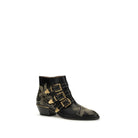 The Susan Boots by Chloé are an iconic expression of rock-chic sophistication. Crafted from smooth leather, they feature micro metal studs and three decorative straps that define their bold silhouette. A side zip closure ensures ease of wear, while the leather lining and insole offer lasting comfort. Finished with a leather sole and true-to-size fit, these boots effortlessly balance edge and elegance.