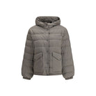 The pongé tec Down Jacket by Miu Miu is a lightweight and versatile garment that combines functionality and urban style. Made of technical fabric, it reinterprets outdoor codes with a structure that makes it perfect both as a standalone garment and as a thin layer in bolder combinations. Down filling provides warmth and lightness, while the drawstring hood and long sleeves with elastic cuffs offer an adjustable, protective fit. The snap-button closure and flap and button pockets add practical and sophisticated details, while the elastic drawstring at the hem allows you to customize the silhouette. The back-injected logo on the back completes the look with a distinctive, modern touch.