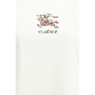 The printed T-shirt by Burberry in white embodies the essence of contemporary elegance expressed through a classic silhouette. The regular fit with short sleeves and a subtle crew neck highlights refined simplicity, while the smooth, carefully selected cotton ensures exceptional comfort and a soft, premium feel. The chest features an intricate embroidery depicting a horseman surrounded by floral motifs, including leaves and flowers in shades of green, pink, and red. Beneath the artwork, the finely embroidered BURBERRY lettering stands out, symbolizing the heritage and impeccable style of the iconic fashion house.