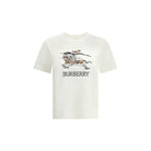 The cotton T-shirt with drawn EKD by Burberry is crafted from soft mid-weight cotton jersey and features a comfortable fit, offering a roomier silhouette than a regular cut. The crew-neck design is finished with a ribbed collar and enriched with the Burberry logo, the Equestrian Knight Design, and the Burberry Check, all chain-stitched on the front. The embroidered Burberry lettering completes the piece with an iconic and distinctive touch.