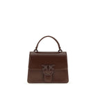 The Love One Top mini Handbag by Pinko is made from shiny vintage-effect leather and features a structured trapezoidal shape. It has a fixed handle and a removable leather and chain shoulder strap, offering three ways to wear it. The magnetic button closure is embellished with a Love Birds Diamond Cut buckle, while the cotton-lined interior features a logoed zip pocket. An elegant and versatile design, perfect for any occasion.