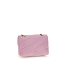 The Calfskin Love Baby Shoulder Bag by Pinko, front closure with magnetic button, iconic gold-plated Love Birds logo embossed on the front, quilted and padded design, double internal compartment, sliding chain shoulder strap, iconic brand monogram embroidered tone-on-tone on the back.