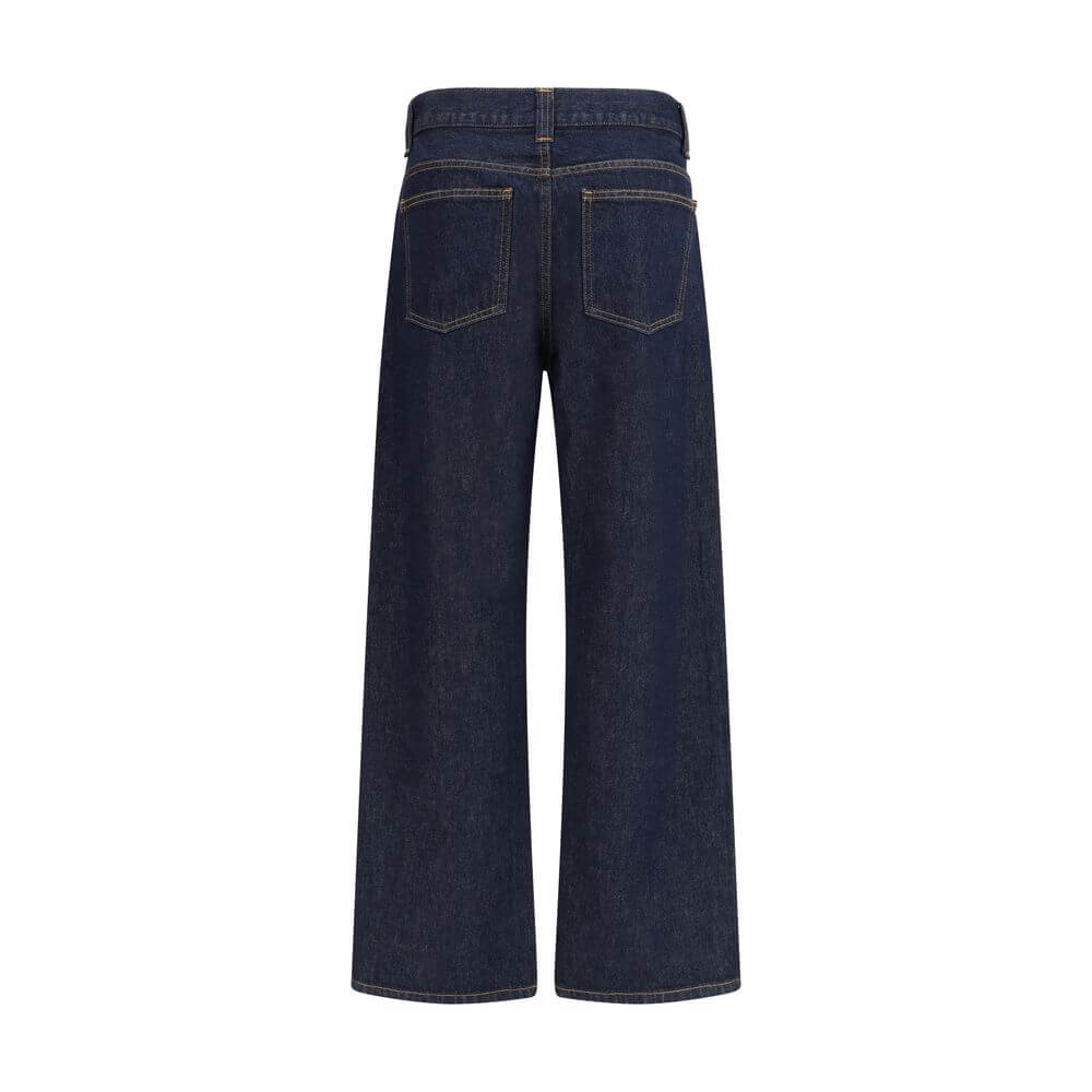 The Bonnie high-waisted wide-leg jeans by Khaite are an iconic piece that combines comfort with contemporary style. Crafted in denim, they feature the classic five-pocket design, zip and button closure, belt loops, and a wide-leg fit for a relaxed yet versatile elegance.