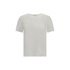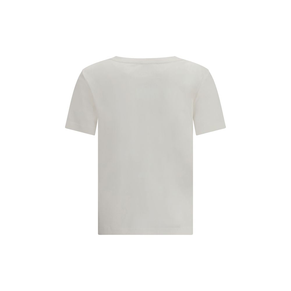 The Maya T-shirt by Max Mara Studio crafted from white cotton and modal jersey. Featuring a ribbed crewneck, short sleeves, and a straight hem, the design is enriched on the back with a subtle tone-on-tone embroidered logo lettering. With its regular fit, this piece is a timeless and versatile essential for everyday wear.