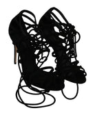 Black Suede Strap Stilettos Shoes Sandals