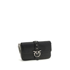 The Baby Love Shoulder Bag by Pinko is an iconic and versatile accessory featuring an adjustable leather shoulder strap with buckle and a chain strap with leather shoulder strap to suit different style needs. The flap closure is embellished with the pod and buckle featuring the iconic Love Birds Diamond Cut logo in antique gold plated metal, giving it a distinctive and elegant touch.