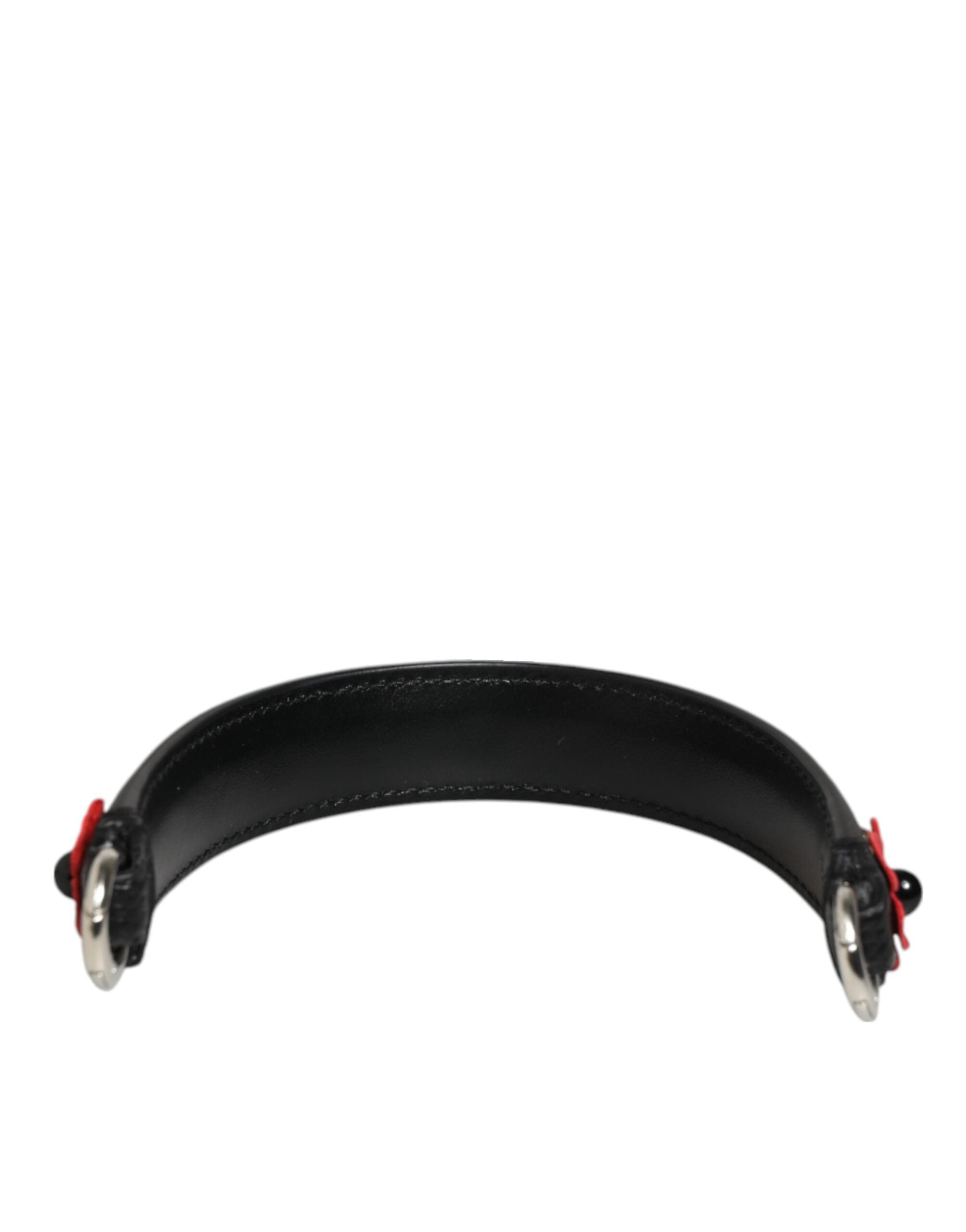 Black Embellished Leather Bag Handle Women Shoulder Strap