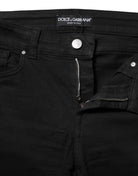 Black Skinny Cotton Mid Waisted Denim Jeans