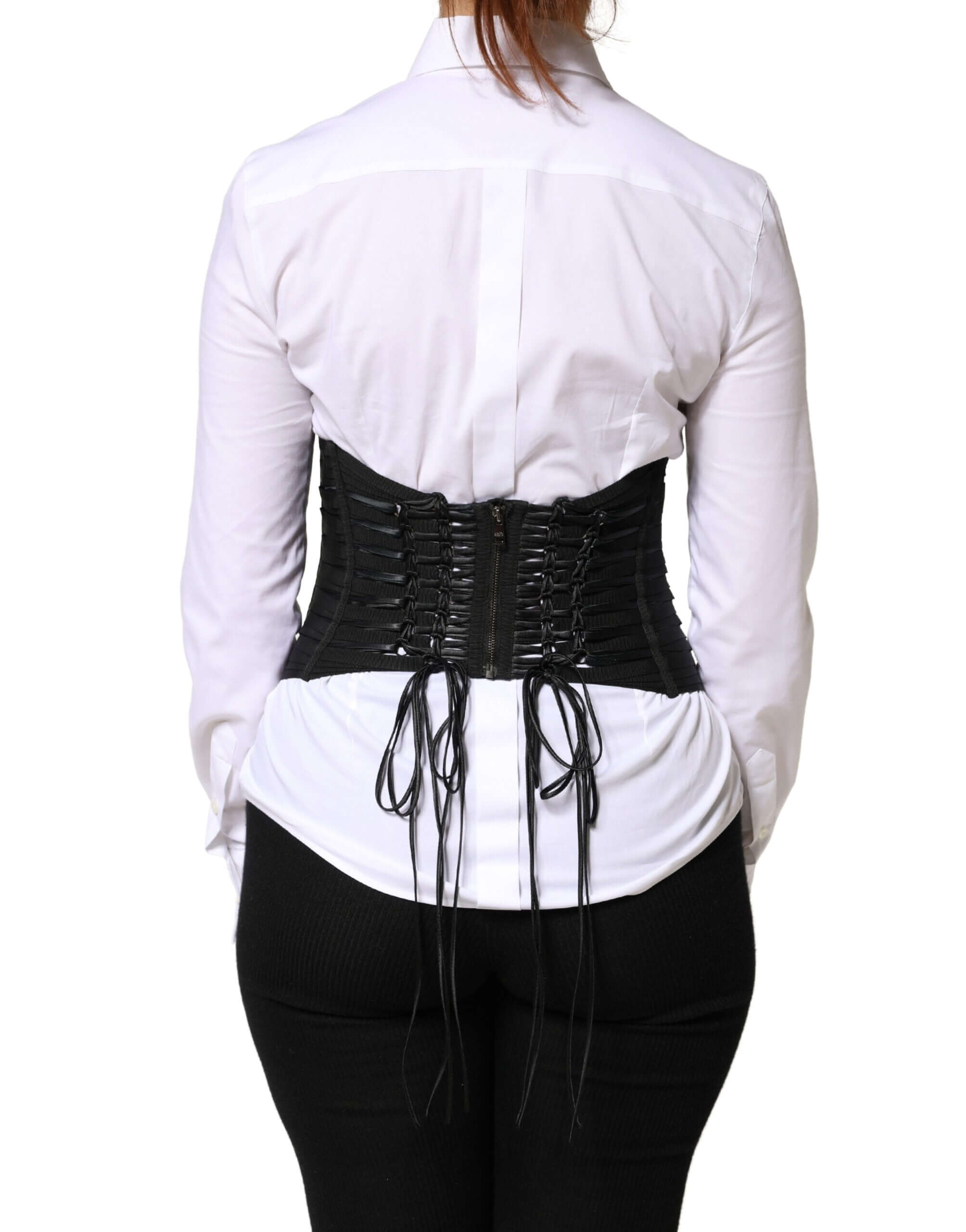 Gorgeous brand new, 100% Authentic Dolce & Gabbana corset waist cincher. Expertly crafted in Italy, this striking black bustier features a structured silhouette with vertical boning, satin and mesh paneling, and multiple lace-up details that sculpt and define the waist. Finished with a sleek front zipper closure and adjustable corset ties, it embodies Dolce & Gabbana’s signature blend of sensuality, strength, and Italian craftsmanship.
