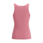 The ribbed tank Top with Love Birds logo by Pinko blends simplicity and character in a finely knitted cotton design with a close fit. The round neckline and ribbed texture enhance the silhouette, while the small centrally placed logo adds a subtle, signature touch. A versatile piece perfect for everyday wear, ideal both for outdoor moments and as a refined layering option under a formal blazer.