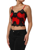 Red Black Lace Trim Polyester Sleeveless Tank Top