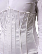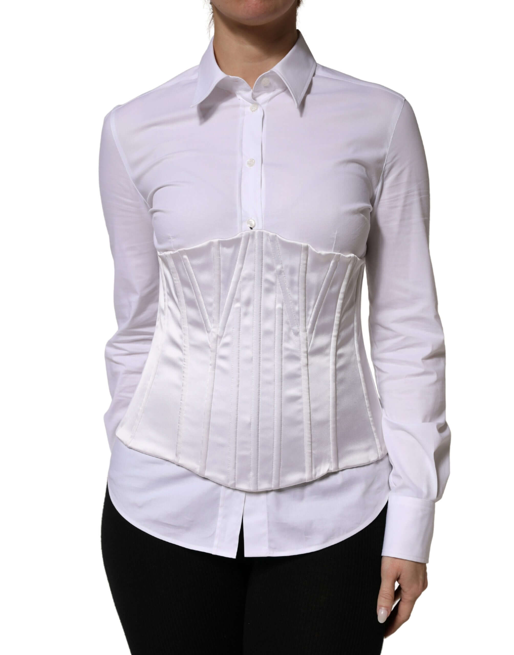 Gorgeous brand new, 100% Authentic Dolce & Gabbana corset bustier waist cincher. Elegantly crafted in a refined white satin finish, this structured piece features vertical boning that enhances and sculpts the waist for a flattering, feminine silhouette. Designed with clean lines and a smooth, polished look, it is perfect for layering over shirts, dresses, or styling as a standout fashion corset. A sophisticated expression of Dolce & Gabbana’s iconic Italian luxury and couture-inspired craftsmanship.