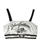 White Silk Satin Crop Black Logo Bralette Top