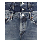 The Elson Jeans by Agolde features a relaxed straight-leg silhouette crafted from double-waisted dark and medium indigo denim. Made from rigid, non-stretch regenerative cotton, it delivers a structured yet comfortable feel. Subtle fading, marbling, and whiskering details give it a naturally worn-in character. A versatile piece, ideal for pairing with fitted tops or layered knits for a balanced and effortless look.