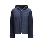The Edito hooded Jacket by Weekend Max Mara is crafted from water-repellent quilted fabric with a diamond pattern on the front and scuba piqué jersey on the back, creating a refined contrast of textures. It features a hood with adjustable drawstring, front welt pockets, and a zip closure. The relaxed fit ensures comfort and versatility, making it perfect for a polished yet casual look.