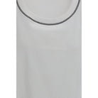 The Top in cotton with crew neckline by Brunello Cucinelli embodies refined simplicity and modern comfort. Crafted from soft, lightweight cotton, it features ribbed detailing that enhances the texture with a sophisticated touch, while the sleeveless design highlights the silhouette with effortless elegance. A versatile piece, perfect for elevated summer outfits or polished daytime looks.