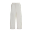 The Row’s Sharka Pants reinterpret the classic cargo pattern with minimalist elegance. Made of soft cotton and cashmere gabardine, they feature a mid-rise waist and a straight leg for comfort and versatility. Sling loops add a technical touch, while side welt pockets complete the design with discretion and functionality.