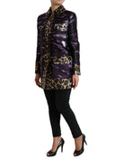 Purple Lamé Jacquard Tiger Print Coat Jacket
