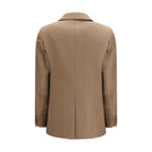 The single-breasted wool Blazer by Max Mara showcases refined, timeless tailoring. Crafted from lightweight pure virgin wool mélange canvas, it features a one-button single-breasted closure and mirrored notch lapels that enhance its clean lines. Welt pockets with flaps at the sides and buttoned cuffs complete the classic design. A slim silhouette with a back vent ensures a flattering, comfortable fit, while the Monogram fabric lining adds a distinctive, sophisticated finish.