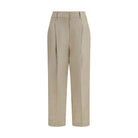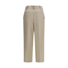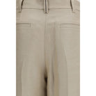 The linen Trousers by Brunello Cucinelli convey effortless, refined elegance. Designed with a wide-leg silhouette, they feature front pleats that add structure and fluidity. The style is finished with belt loops, side pockets, and back pockets, while a button closure ensures a clean, understated look.