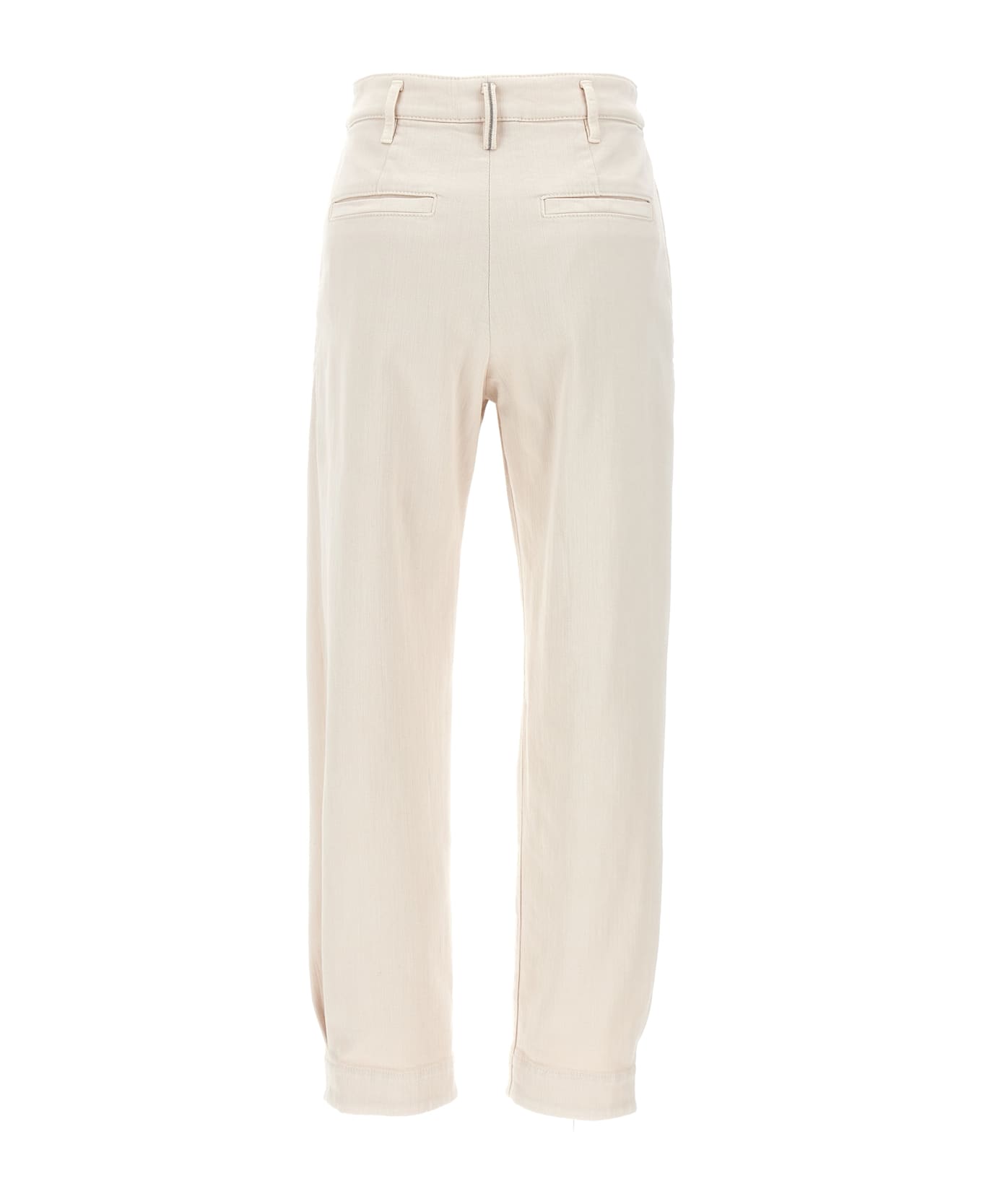 Elevate your wardrobe with the opulent charm of BRUNELLO CUCINELLI’s women’s pants. Designed for the discerning fashionista, these trousers embody sophistication with a touch of stretch for comfort. The talc hue offers a versatile base for a myriad of ensembles. Crafted in Italy, these pants are a testament to sartorial excellence. Perfect for creating a bold, trendy look that stands out with effortless grace.