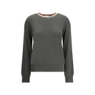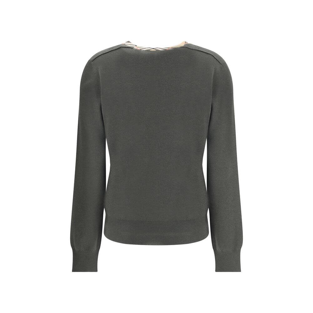 Burberry’s Wool Pullover with Check trim is an understated yet distinctive homage to the British fashion house’s iconic style. Made from soft wool, this style features the Burberry Check pattern knitted directly on the collar, a refined detail that adds a touch of recognition without being overdone. Ribbed trim on the collar, cuffs and hem complete the design, giving a defined and comfortable fit. A perfect garment for those seeking contemporary elegance and quality tailoring.