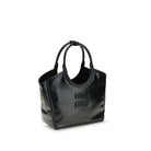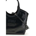 The Ivy Shoulder Bag in leather by Miu Miu reinterprets the tote style in a more compact and practical version, ideal for everyday looks. Made from soft calfskin leather with a delicate sheen, it is embellished with tone-on-tone details that enhance its elegance. The double leather handles and gold-tone hardware add a sophisticated touch, while the cotton gabardine interior with double zip pocket ensures excellent organization. The leather lettering logo on the front completes the distinctive design.