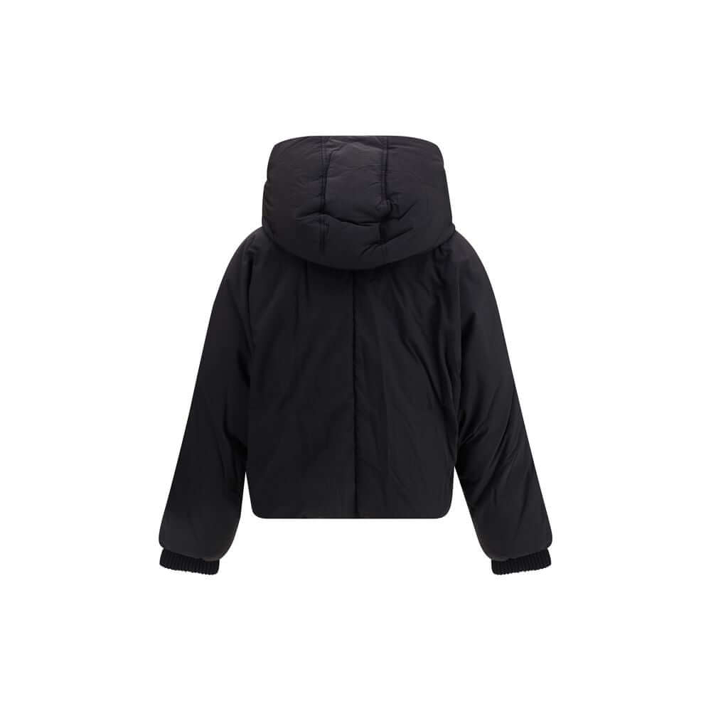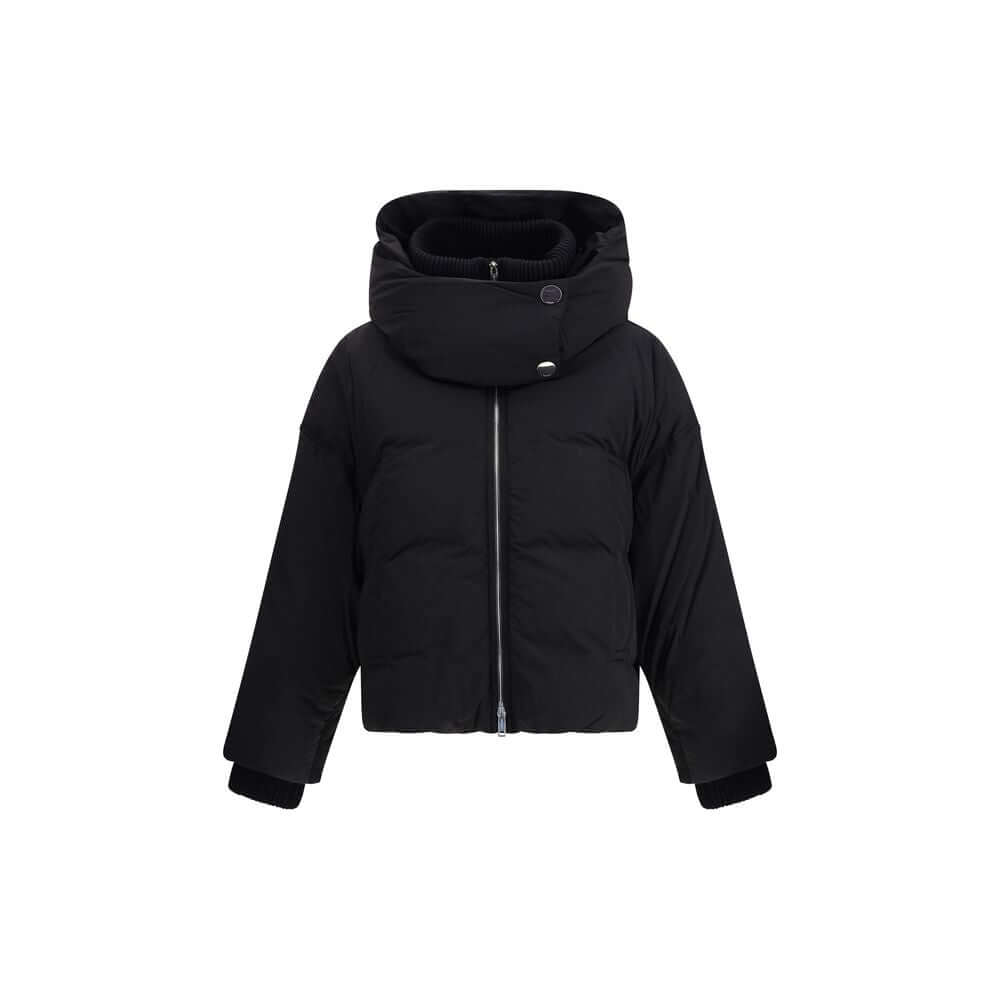 The Glizia Padded Jacket by Sportmax is crafted from technical fabric with a clean line and functional details. It features a high ribbed collar, ribbed elastic cuffs, a two-way front zip closure, and a removable hood secured with snap buttons. Side welt pockets complete the design with understated practicality. A piece that blends comfort and tailored precision, embodying Sportmax’s modern vision where elegance meets performance and refined structure.