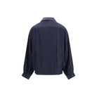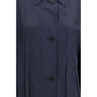 The Washed Silk Jacket by Prada is a sophisticated and versatile piece, crafted from washed silk for an elegant look and soft feel. Featuring a classic collar, it has a concealed zip and button closure, giving it a clean, minimalist design. The enameled triangular logo on the front adds a distinctive touch. The two buttoned pockets on the front offer practicality, while the straight elasticated hem and long sleeves with adjustable cuffs complete the look, making this jacket perfect for any occasion.