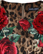 Brown Leopard Red Roses Cotton A-line Dress
