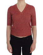 Gorgeous brand new with tags, 100% Authentic Dolce & Gabbana red wool tweed short sleeve V-neck pullover sweater. This item comes from the exclusive MainLine Dolce & Gabbana Collection.