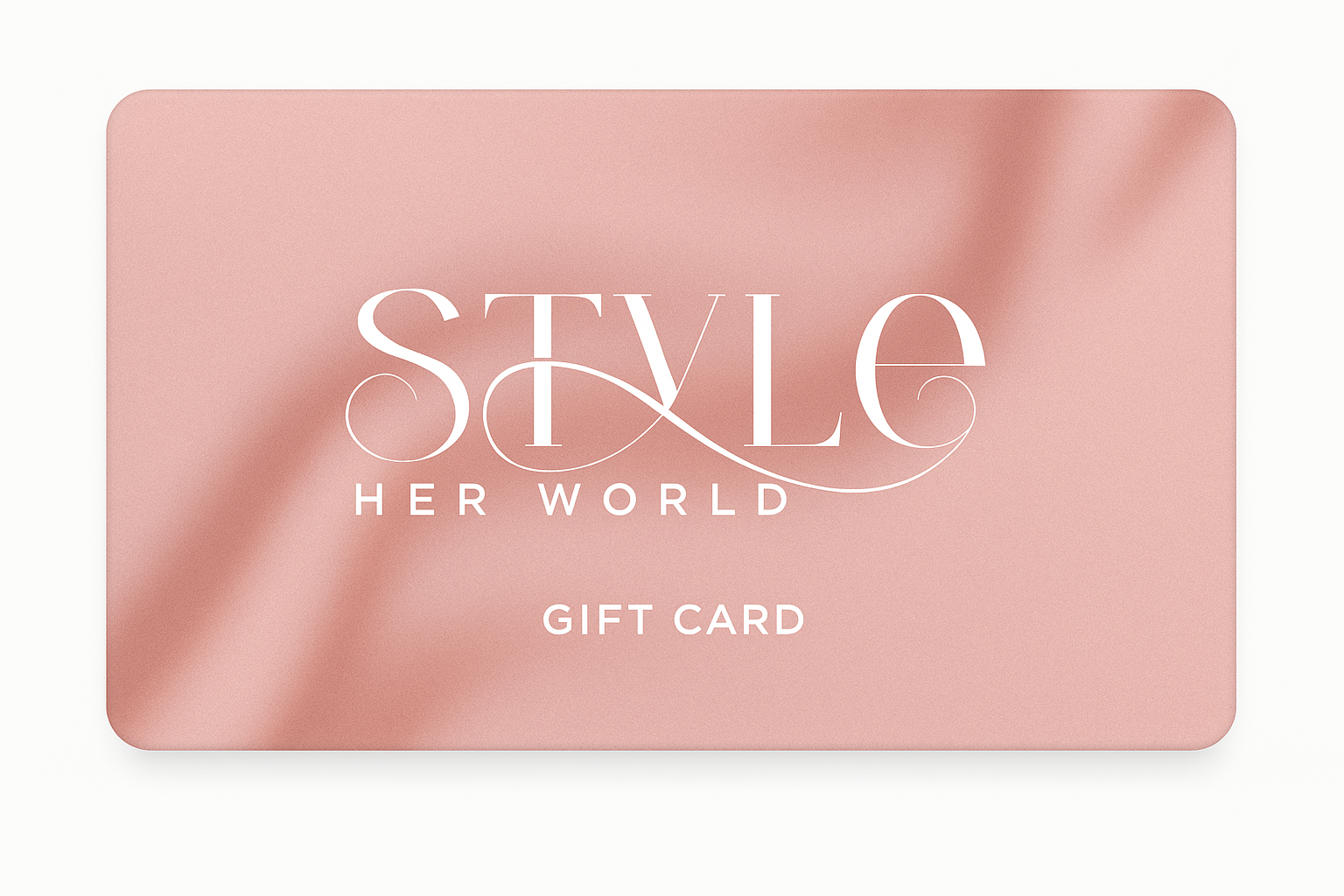 Let your loved ones select exactly what they want with the Style Her World E-Gift Card. Recipients enjoy complete flexibility to choose from any available item. Please note: E-Gift Cards cannot be refunded, transferred to another person, or used after one year from purchase.