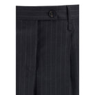 The pinstripe wool Trousers by Ferragamo offer a contemporary interpretation of classic elegance. Inspired by traditional menswear tailoring, they feature a slightly low-rise waist and a fluid leg that moves naturally. The pinstripe pattern evokes 1930s influences, while double pleats softly expand the leg volume, creating a refined and timeless silhouette.