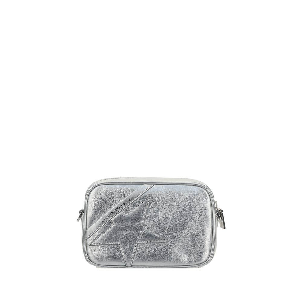 Calfskin Mini Star Shoulder Bag by Golden Goose, top zipper closure, iconic tone-on-tone brand star on side panel, iconic brand monogram press-stamped on front, sliding chain shoulder strap.