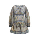 The Wanderlust mini Dress by Zimmermann is a garment that combines elegance and boldness, made from a fine cotton and silk blend fabric that offers comfort and luxury. The elongated fitted bodice with reinforcement enhances the figure, while the voluminous gathering adds a touch of dynamism and charm. The invisible zipper at the back of the bodice and the gathering at the center create a refined stylistic effect. Elastic cuffs complete the design, giving further definition to the look.
