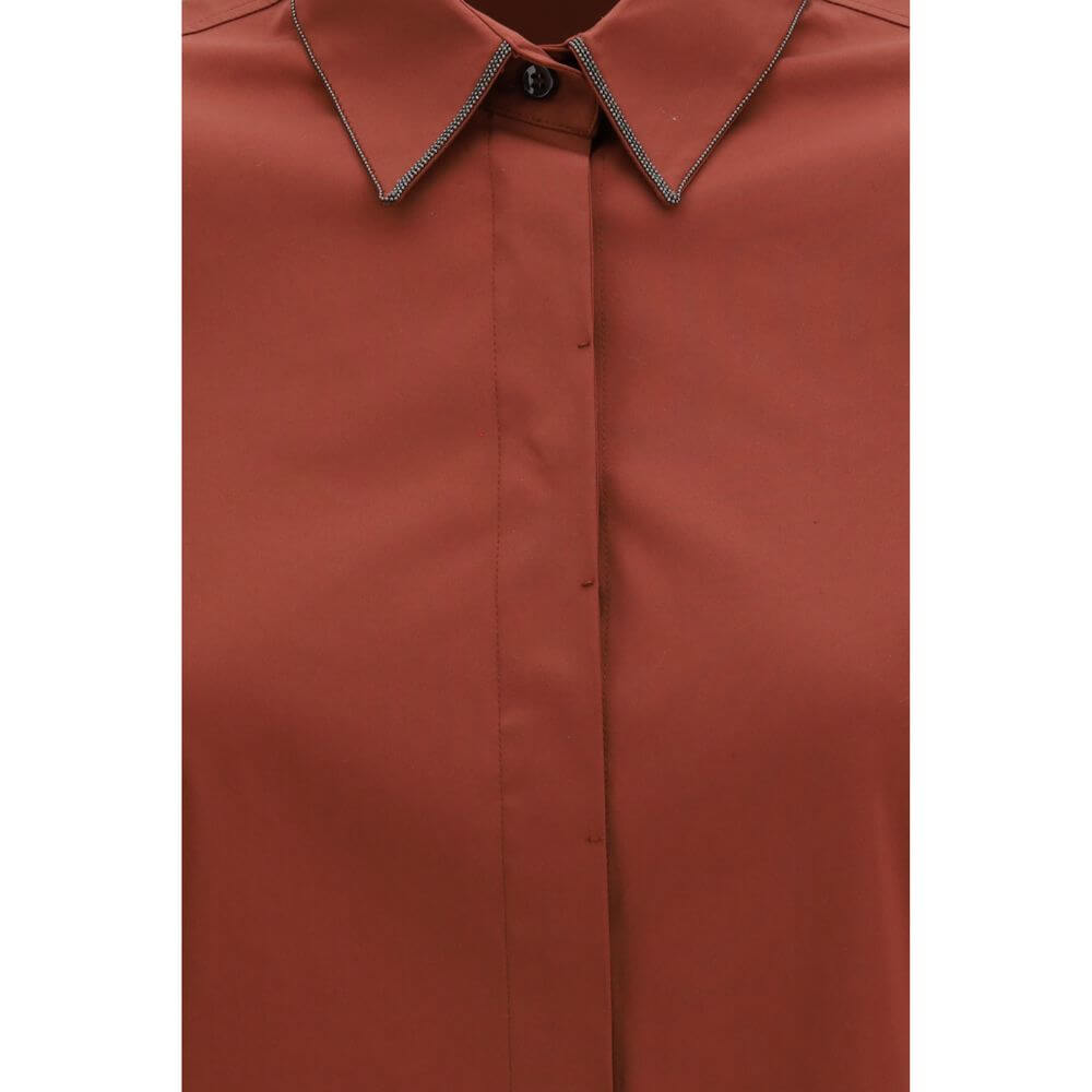 The cotton Shirt by Brunello Cucinelli is an elegant and refined garment made from high-quality poplin. The classic collar, embellished with the brand’s iconic jewels, adds a touch of understated luxury. The front button closure keeps the design simple and sophisticated, while the adjustable button cuffs allow for a customized fit. The monochrome pattern gives a clean, versatile look, while the regular fit ensures comfort and a classic silhouette.